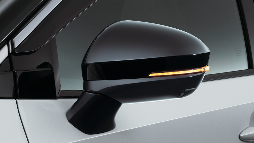 フロントターンランプと連動してドアミラーのLEDが流れるように光り、先進的でスタイリッシュな印象を演出します。