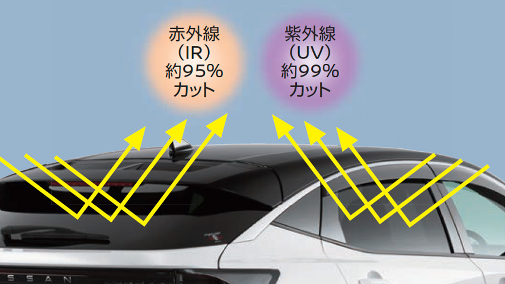 紫外線(UV)は約99%カット、赤外線(IR)は約95%カット、可視光線透過率は約39%