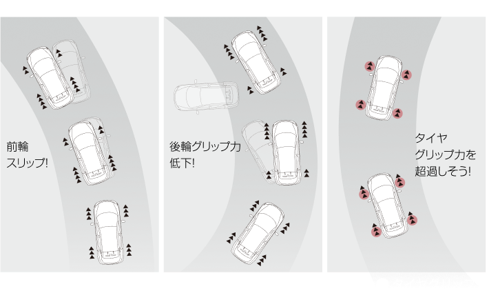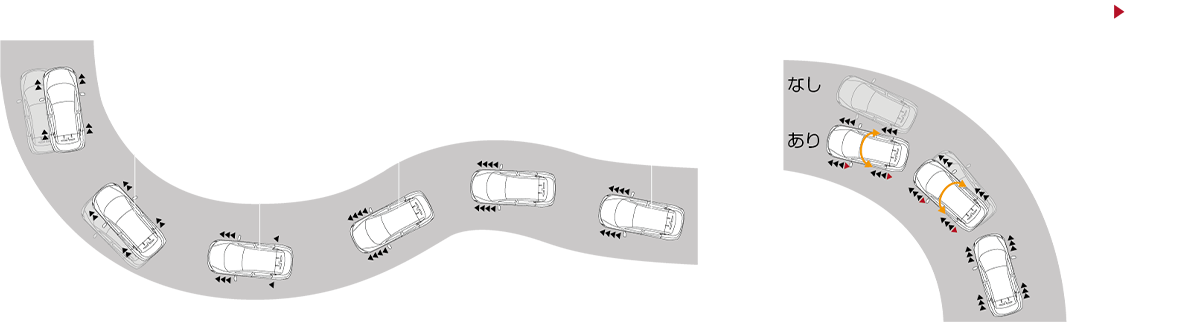 ブレーキ制御 ワインディングなどで4輪のブレーキをコントロールしてドライバーの意図したコーナリングを可能にします。