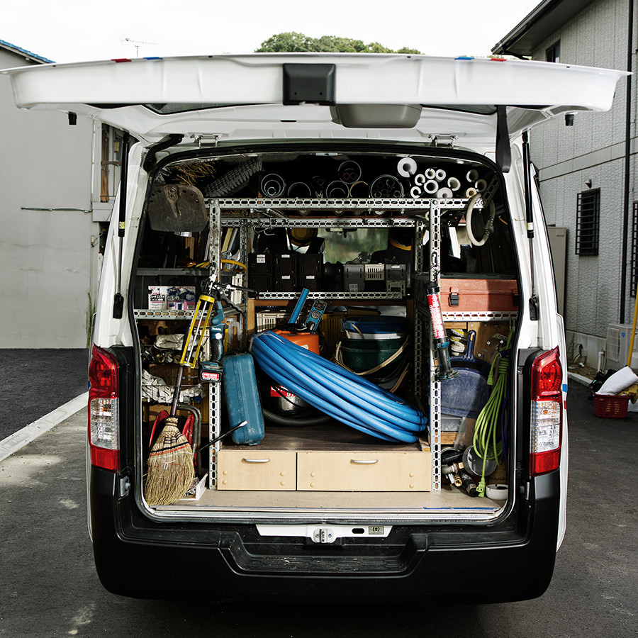 「以前に乗っていた同社BANETTEの1.5倍くらい積める感覚があります。うちの仕事は、素材の違う配管や細かい資材をたくさん積んでますけど、それが全く邪魔にならないからすごい」