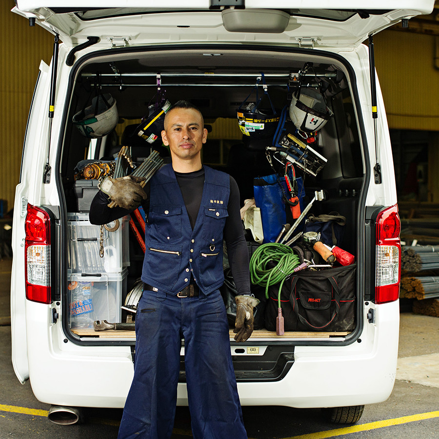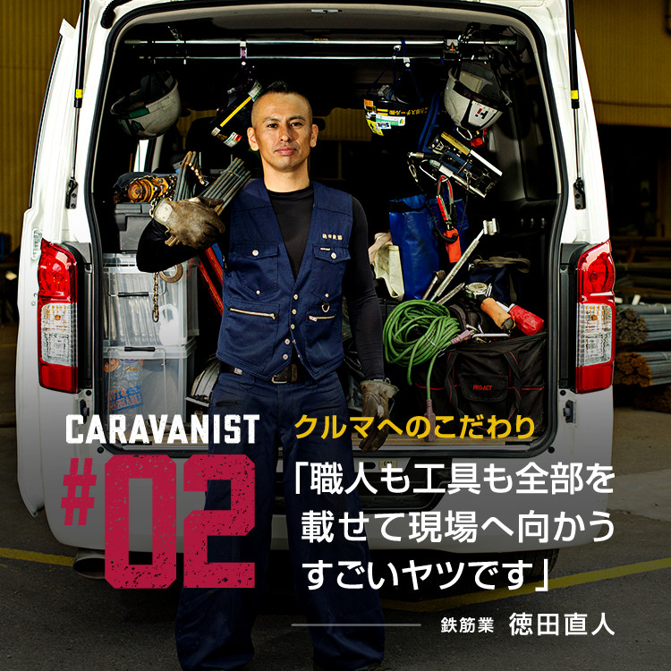 「人と同じのは嫌だったんです。デザイン的にもキャラバンが好きでした。フロントから見た顔つきがいいですよね。現場にこの車で行くと「いい車だね」とよく声かけてもらってます」