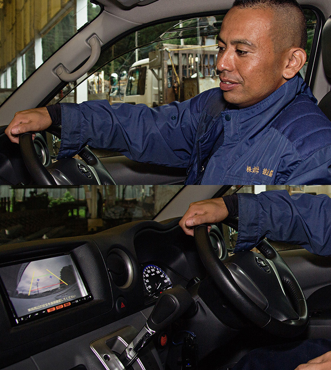 「運転席のフロントガラスが広いため、広々としていて左右までよく見えます。流れていく景色が美しく感じられる。荷室が満タンでも使えるバックモニターも便利です。運転するのが楽しくなるので、結局いつも自分で運転してしまいますね」