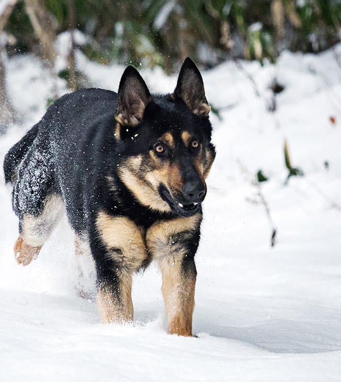 氷点下5度を下回る吹雪の中、踏みしめる雪の冷たさがブーツを越えて足の指先に伝わってくる。「ここから先は車を降りて歩いて向かいます」そう告げた訓練士の池田が荷室に積み込んだケージを開けると、2頭の犬が待ちくたびれたと言わんばかりに、まっさらな新雪へ勢いよく飛び出してきた。