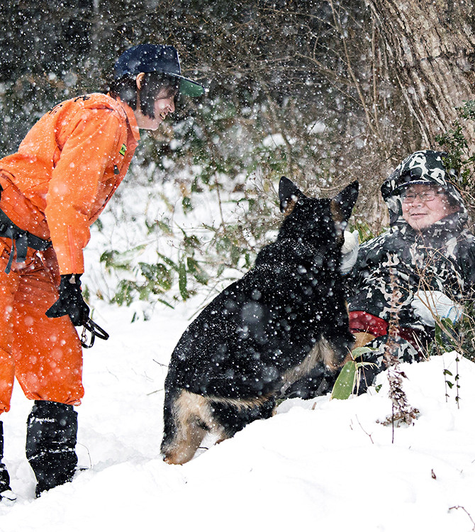 訓練した犬は、要請があればどこへでも出動する。2011年の東北沖地震の際には岩手に、2005年には地元山形で起こった羽越線脱線事故にも池田の訓練した警察犬が出動した。天災が多い日本では、救助犬の要請が年を増すごとに増えているという。