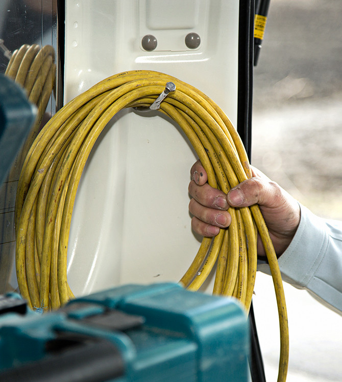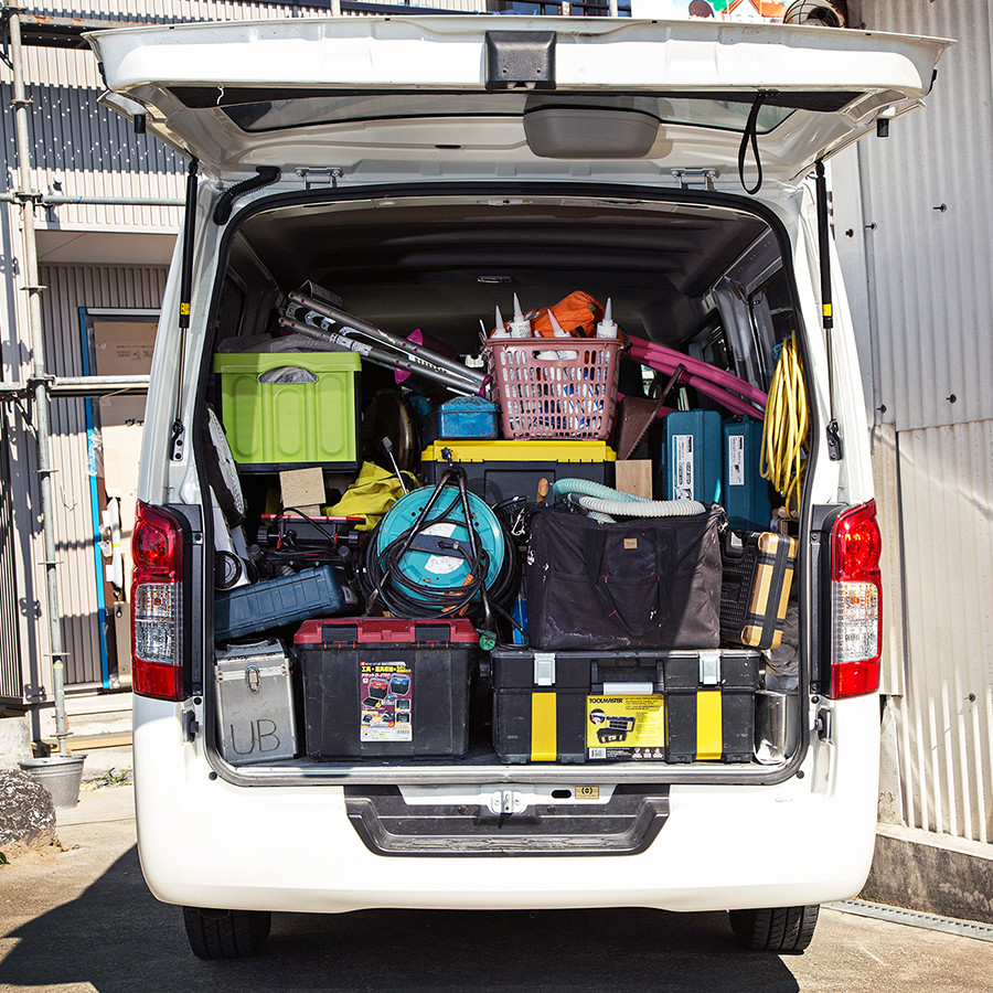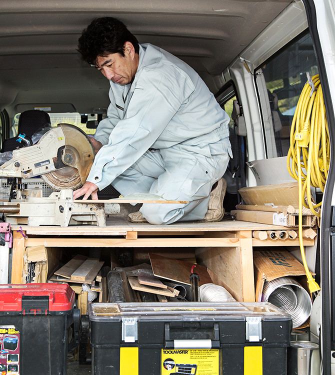 「木材の簡単な加工が必要な現場では、荷室がそのまま作業台になります。木屑などでお客様の家を汚さずに済みますし、小型の掃除機も用意しているため、車内を汚す心配もありません」