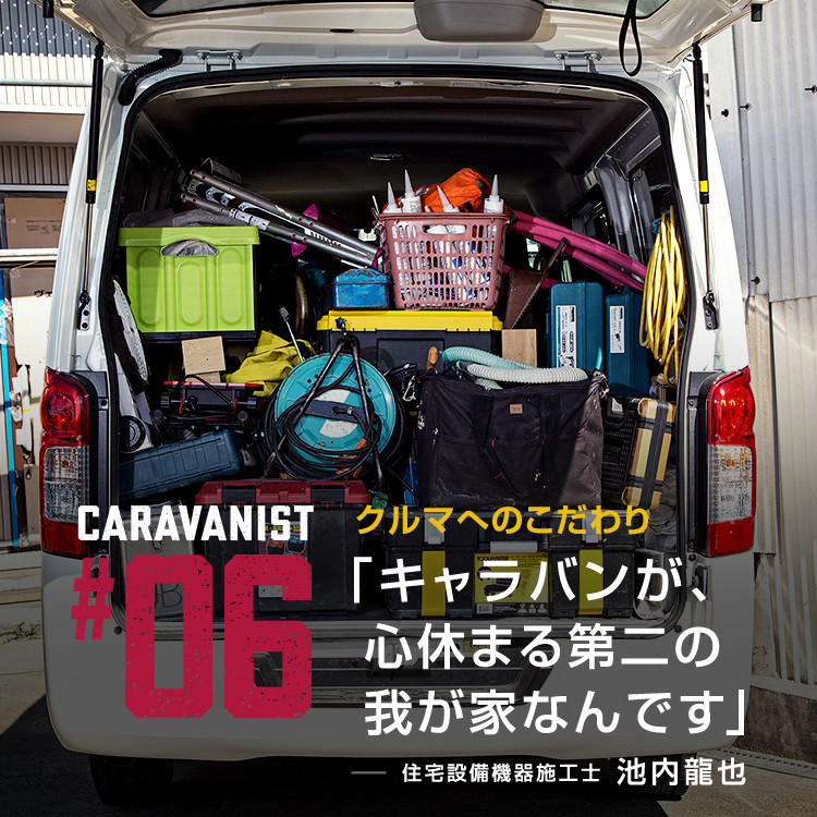 「あらかじめキャラバン備えつけられているM6サイズのユーティリティーナットに、純正オプションパーツからフックを装着しています。ヘルメットやケーブルなど、すぐに取り出したいものをかけておくのに重宝しています」