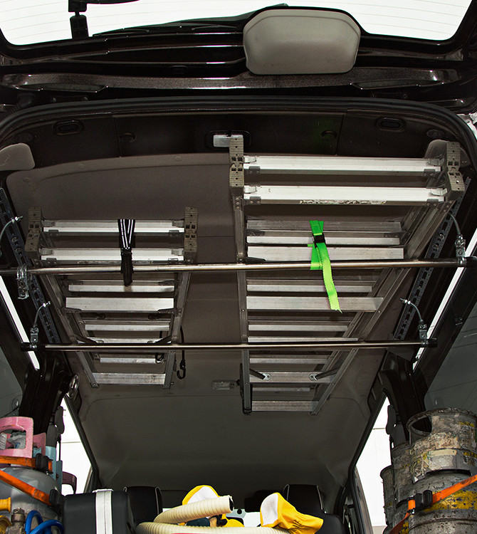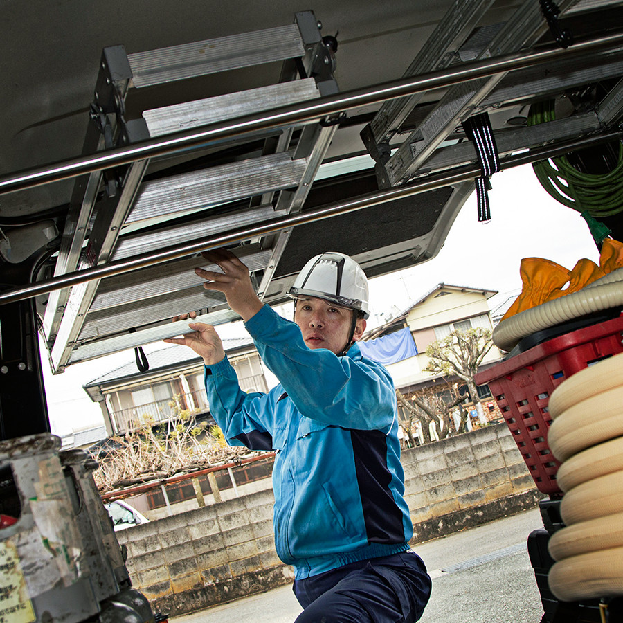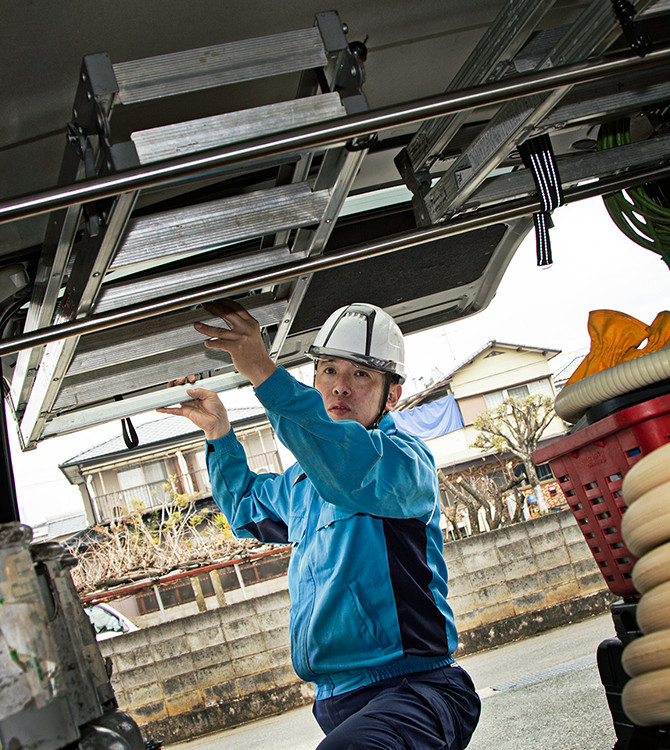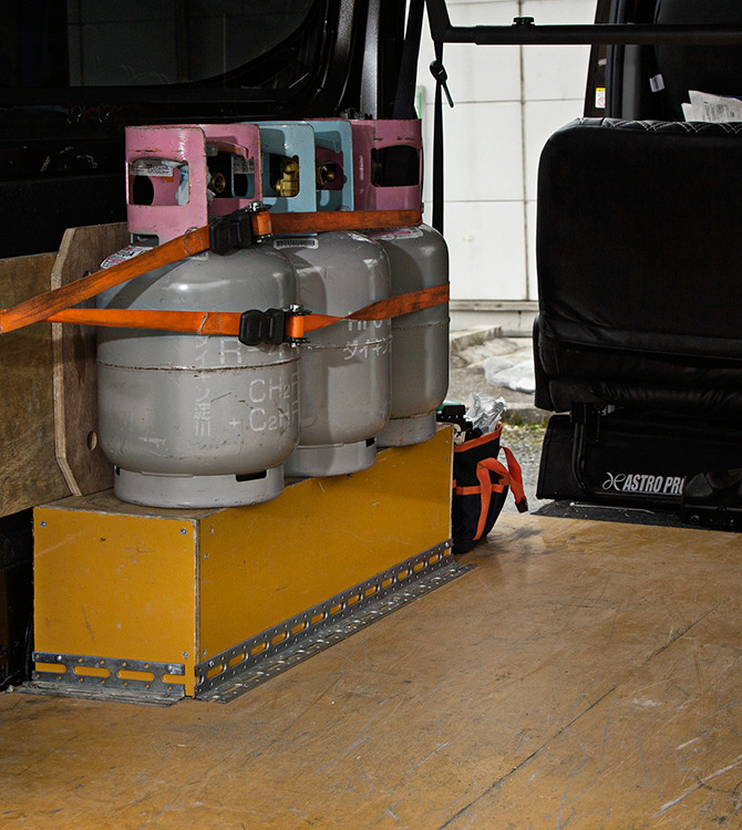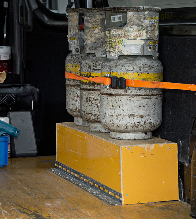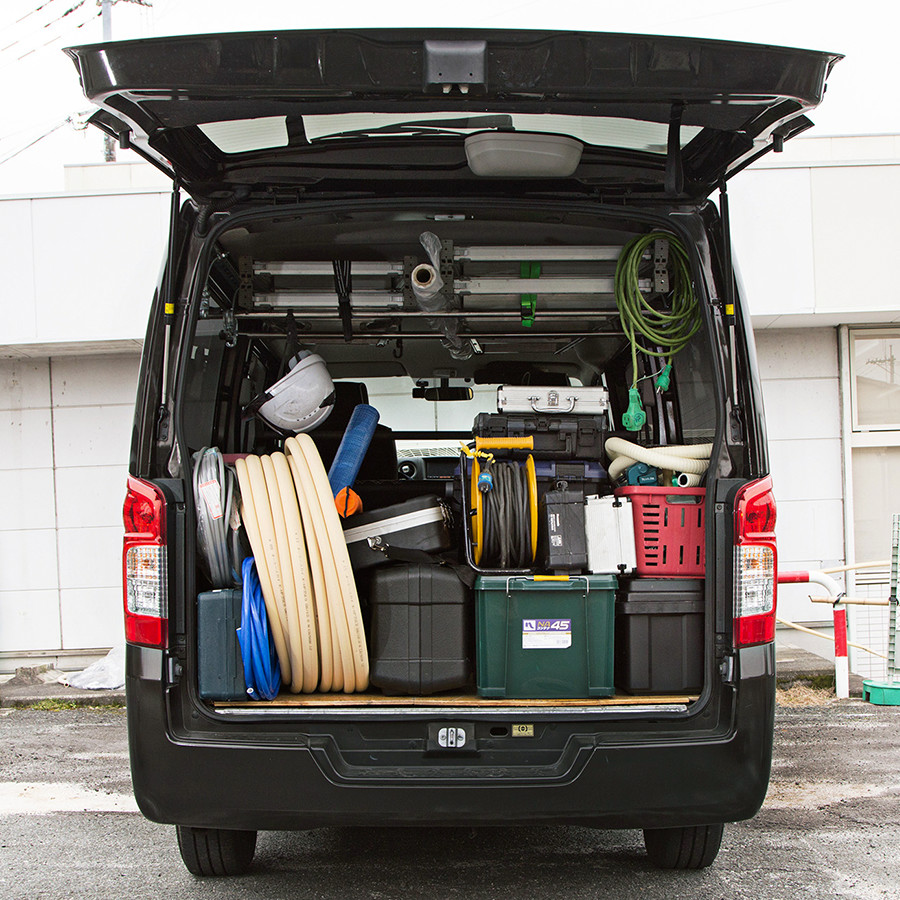 「荷室部のポールや座席下の隙間を利用した収納が現場の道具を納めるのにちょうど良く、重宝しています。走行性も良いため、振動などで道具を傷める心配もありません」