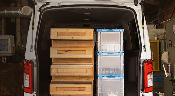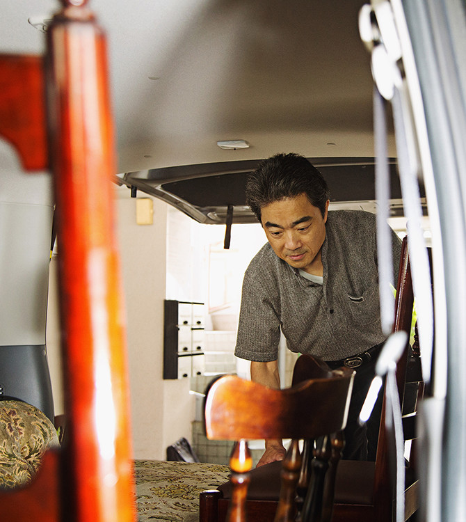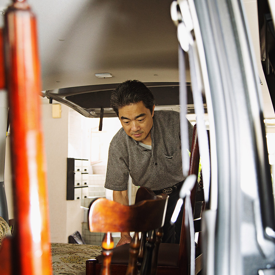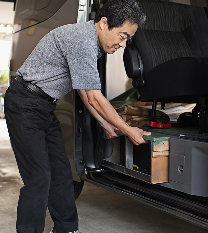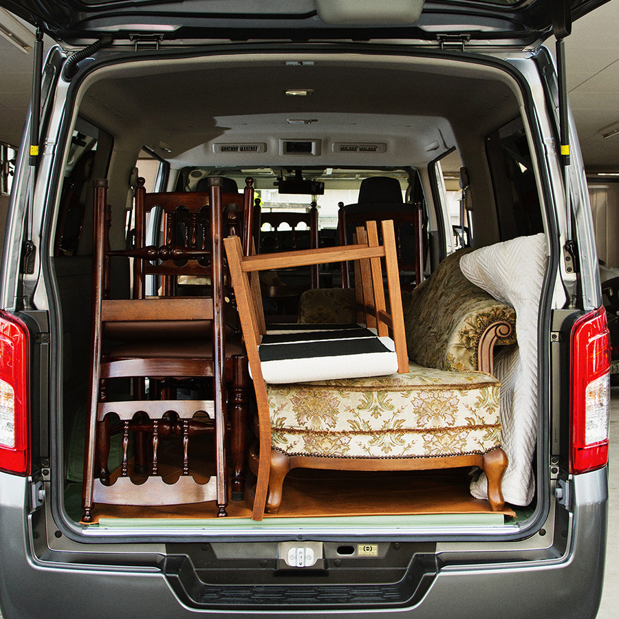 顧客によっては複数の家具を荷室に積載しなければならないため、出来る限り余計なものを置かず、繊細な椅子や家具などを傷めない配慮として、荷室の床面に自作のレザーシートを備え付けている。