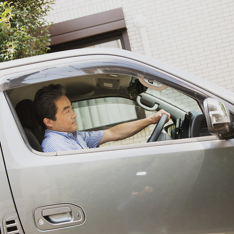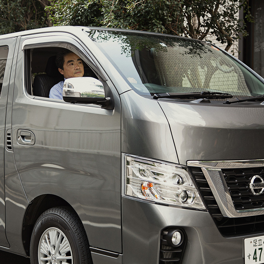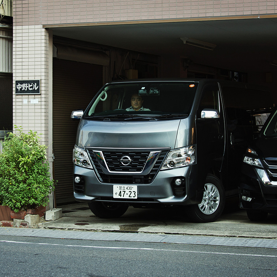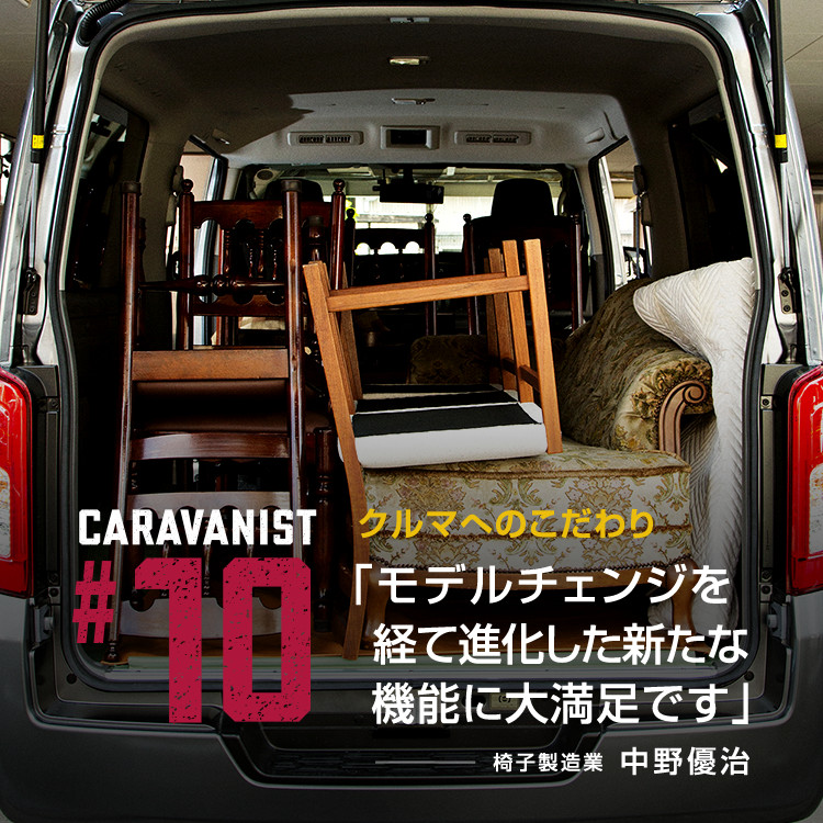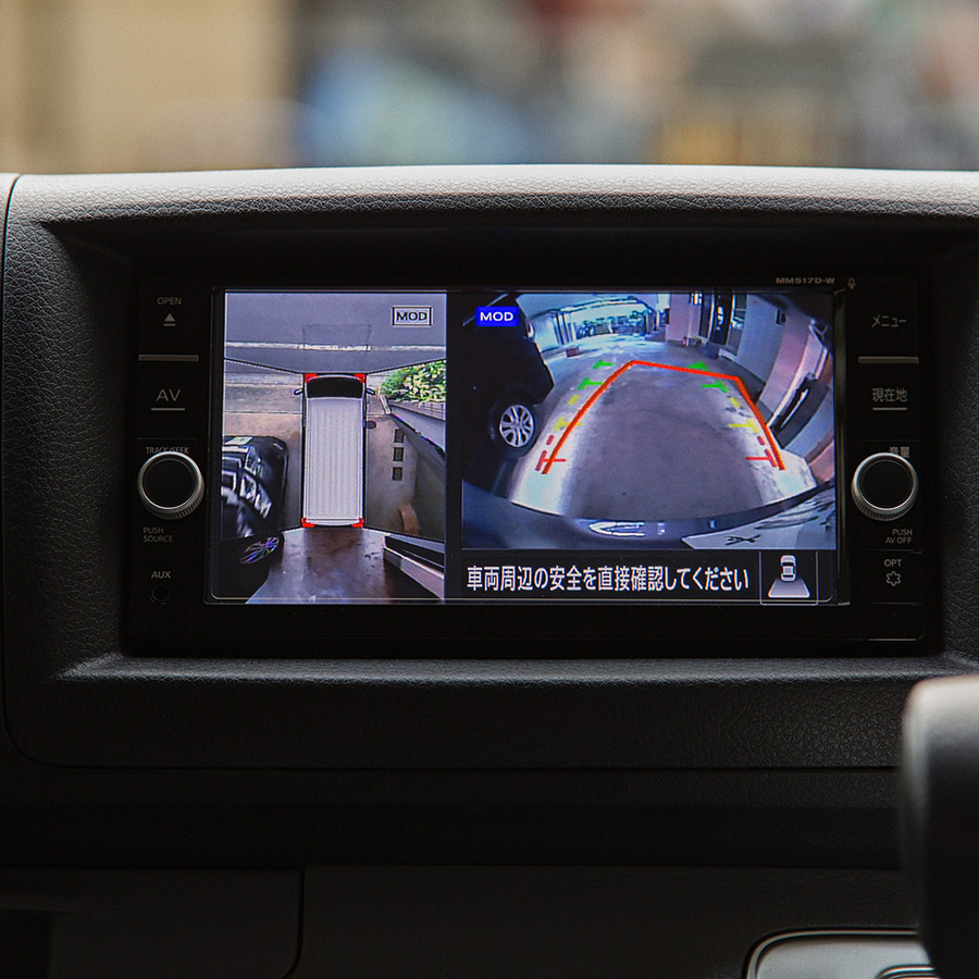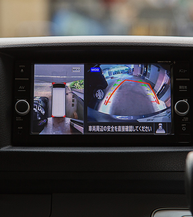 「会社の駐車場や周辺の道路、納入先の住宅街など、狭い道でも『インテリジェント アラウンドビューモニター』がついているので安心です。特に荷室に椅子を多く載せている場合には、後ろがあまり見えないので助かっています」