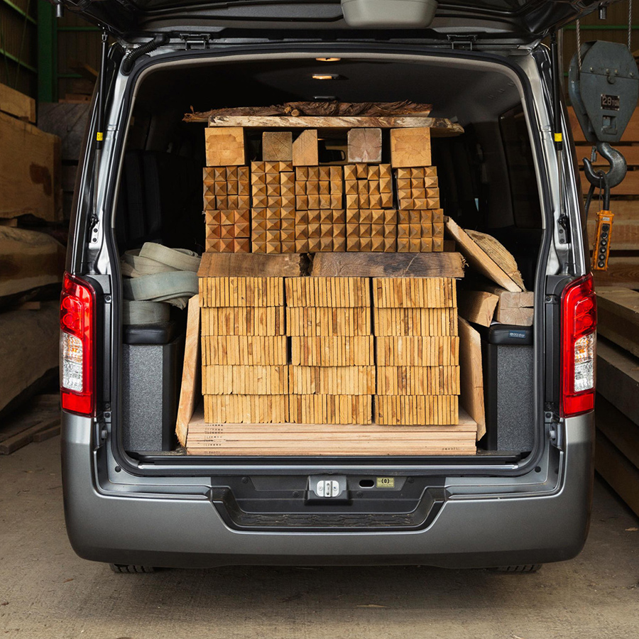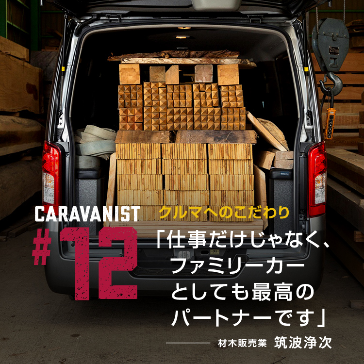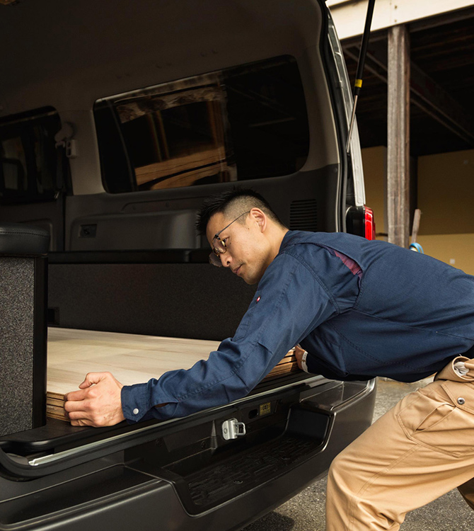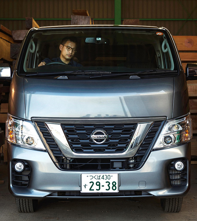 大きな木材の納品はトラックで行いつつ、サポートとして小回りの効くキャラバンを利用。重量やサイズの異なる材木もらくらく収納できる大容量の荷室はプライベートの子供の習いごとの送迎にも活躍。