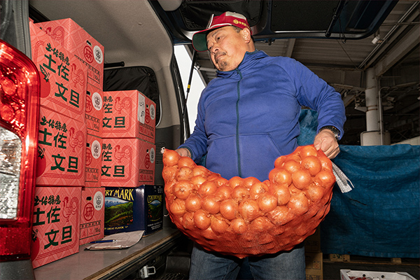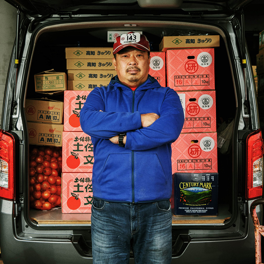 京都市中央卸売市場に次いで日本で2番目に長い歴史を持つ、高知市中央卸売市場。その、澄みきった朝の余韻を残した場内を、積荷を載せた一台のターレーが音もなく行き過ぎる。 床にはずらりと並べられた山積みの野菜や果物の箱。その一つ一つを横目で眺めながら、周囲で男たちが和やかに談笑している。