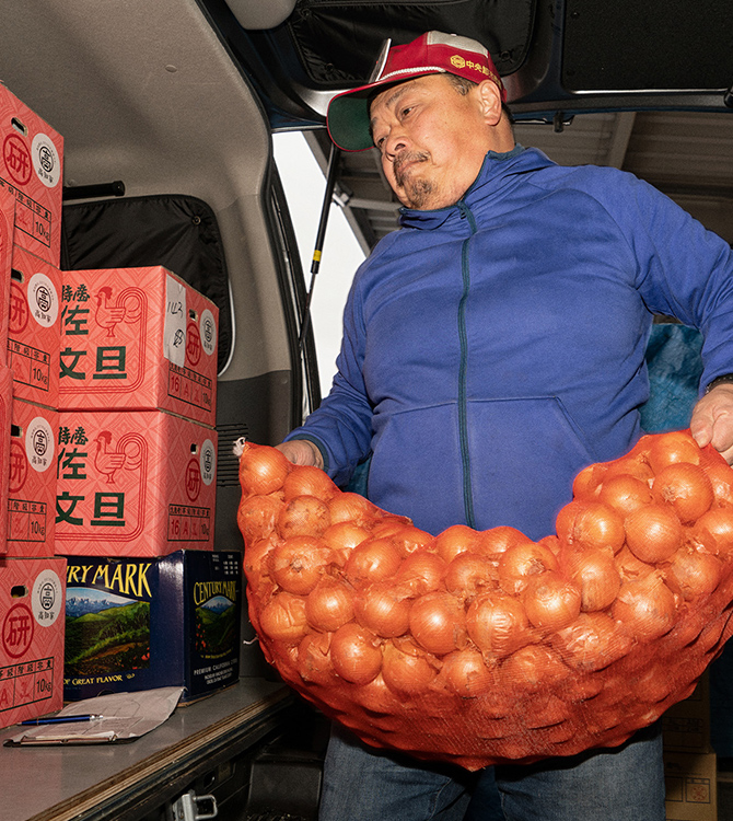 そんな山﨑の日課のひとつに、今から40年前、業務食に病院給食と学校給食が加わったタイミングで父が始めた、ルート配送がある。現在では山﨑が引き継ぎ、もう10年以上、変わることなく配送を続けてきた。