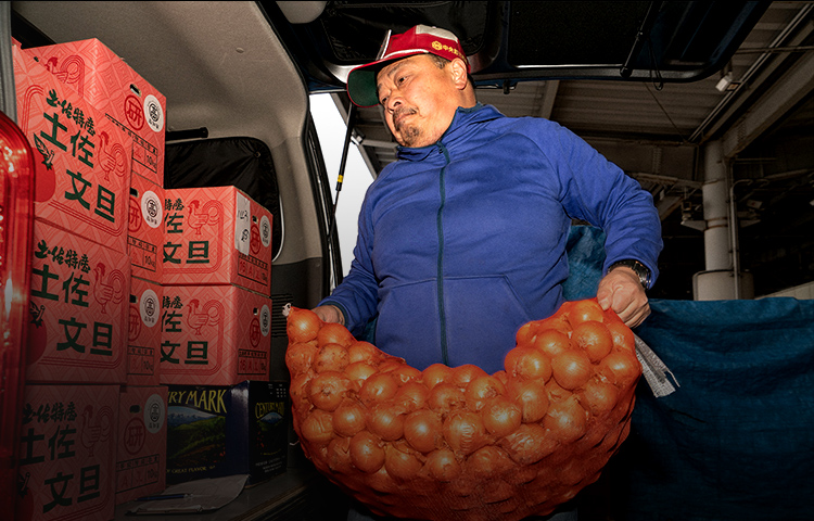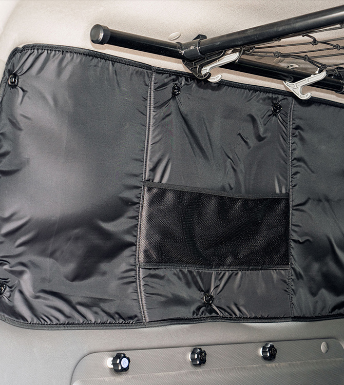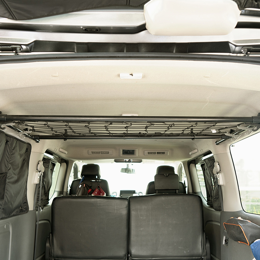 「鮮度が命の野菜にとって、高温は大敵。夏場の車内は特に暑くなるわけだけど、遮光シートをつけて後ろのエアコンを強めにつけておくだけで、保冷車の代わりになるくらい涼しいんです。使わないときは天井につけたネットに挟んで邪魔になりませんし、早めにつけて積み込めば、朝行って帰ってくるまでに野菜が『しなる』こともない。野菜運びにもぴったりの車ですよ」