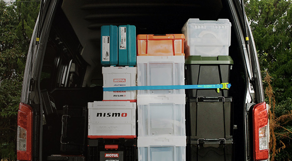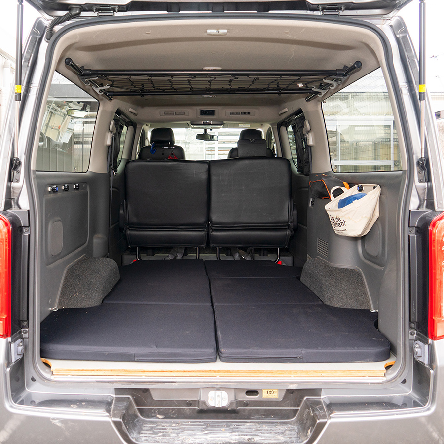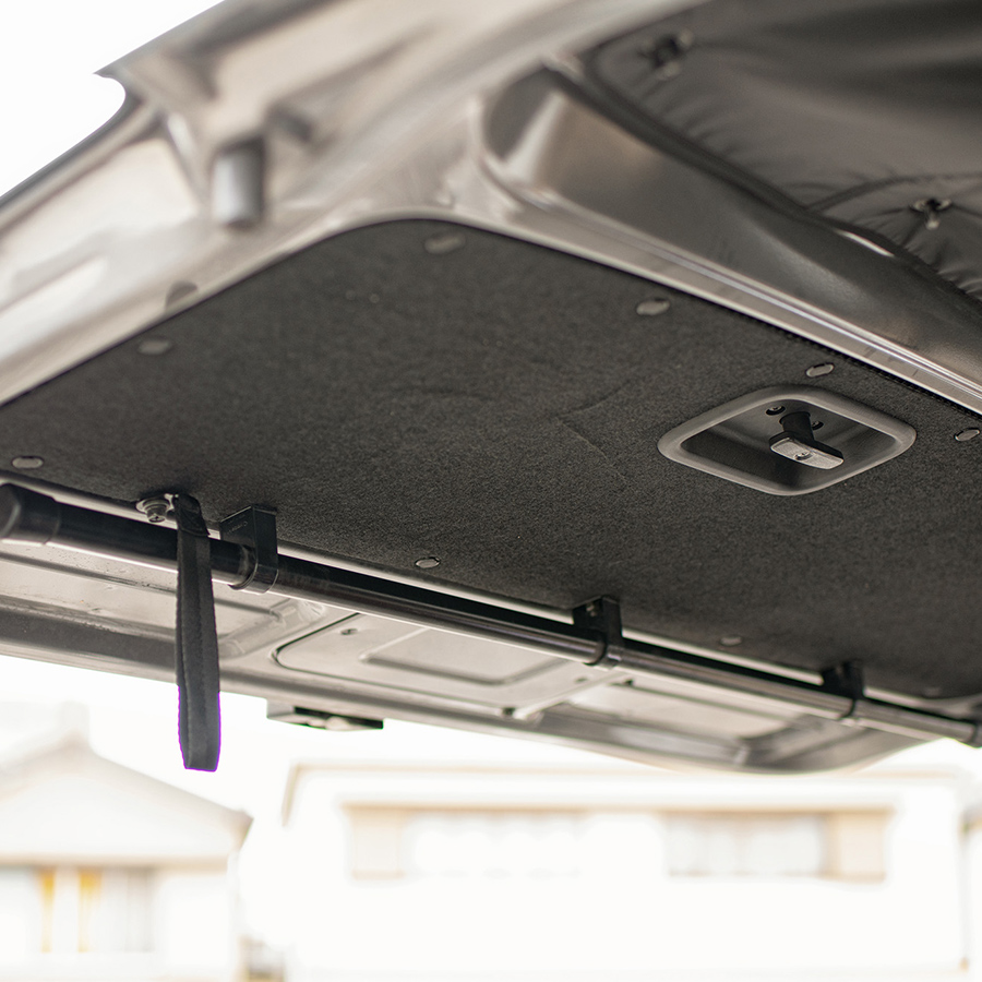日々の配送業務だけではなく、ファミリーカーとしても活用するため、荷室にはできるだけ棚を設置せず、広いスペースを確保。代わりにラゲッジユーティリティナットを存分に活用したカスタムで拡張性を高めた。