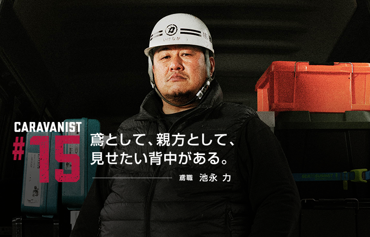 「キャラバンはお金をかけずにいろんな用途でカスタムができるんです。すこし手をかけるだけで、とても役立つ立派なものができます。後ろのドアにつけたこのポールも標準のラゲッジユーティリティナットに取り付けたものですが、洗ったタオルやTシャツを干しておくだけですぐ乾きます」