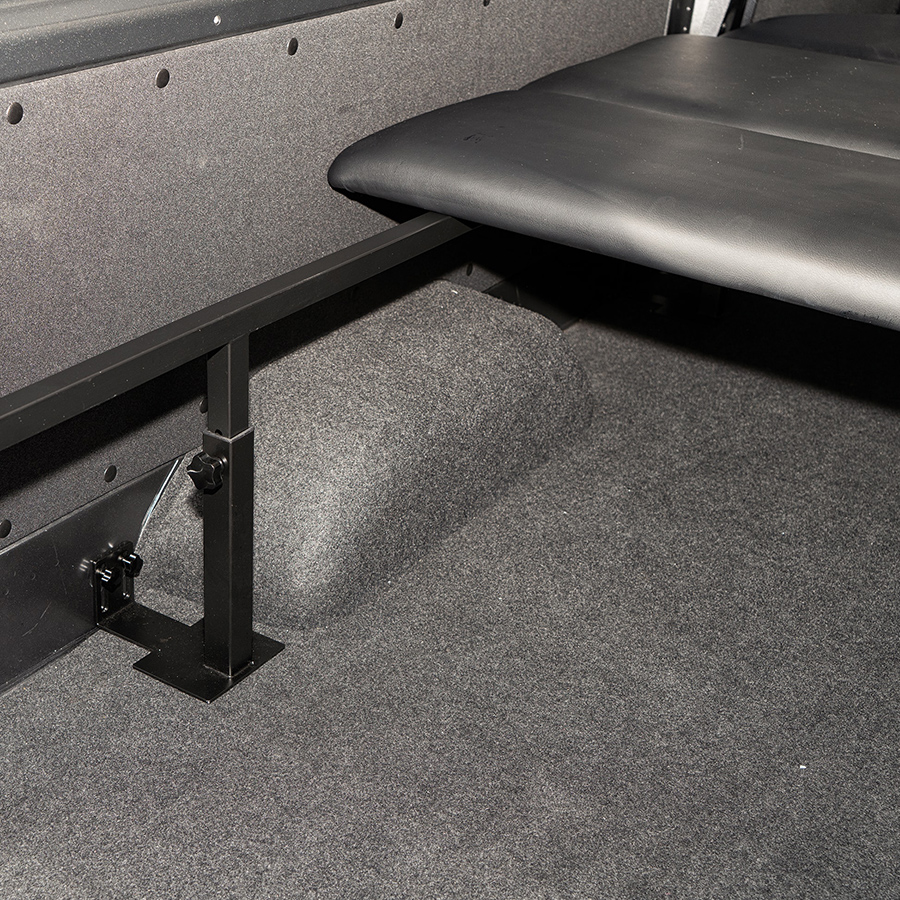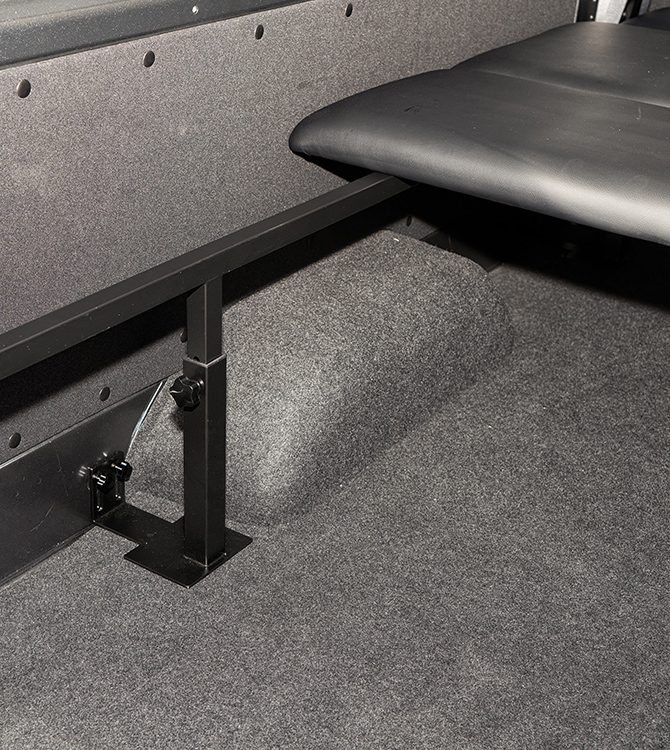 「荷室に標準装備されているラゲッジユーティリティナットで、床を傷つけず簡単にベッドキットが付けられるところも魅力だったね。ベッド下には荷物がたくさん入るし、広々としているから、ベッドの上でゆったり座ったり、仮眠をとったり。短い休憩でも思うままに体を休められるよ」