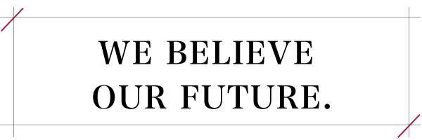 「WE BELIEVE OUR FUTURE.」。今までやってきた、自分たちの仕事を信じること。あのサーチライトのようにまっすぐな、シンプルなそのメッセージに共感し、賛同の意を込めて、倉庫や会社の入り口に貼った。