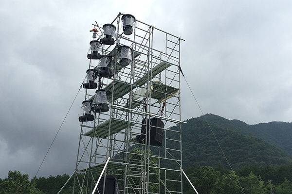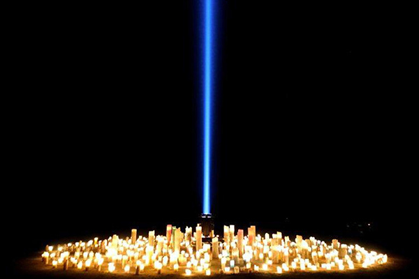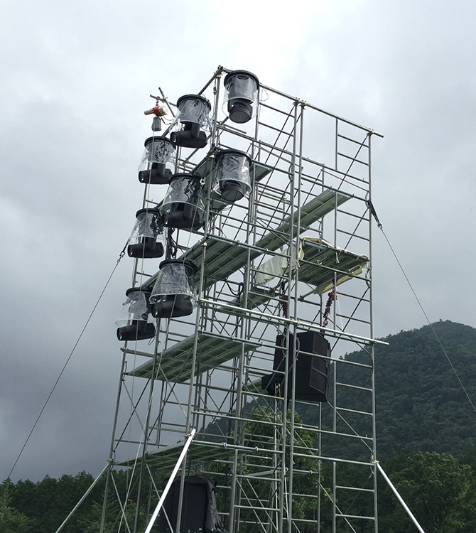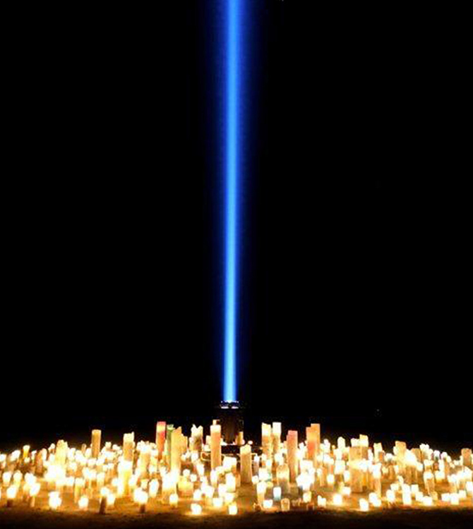 そんな芦川が自ら赴いた現場で、忘れがたい光景がある。2015年、9月5日午前0時から福島県楢葉町の避難指示解除に伴ったキャンドルナイトが、有志のアーティストと地元住民の方々と行われた。芦川も、その演出の一環として、キャラバンにサーチライトを持参して臨んだ。