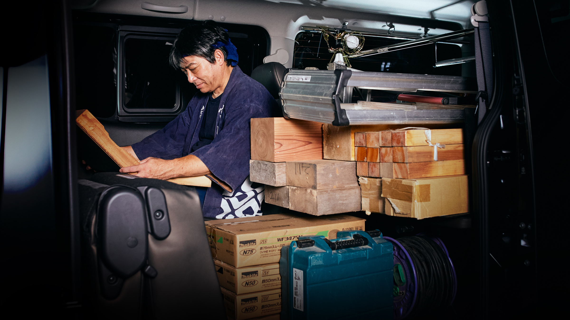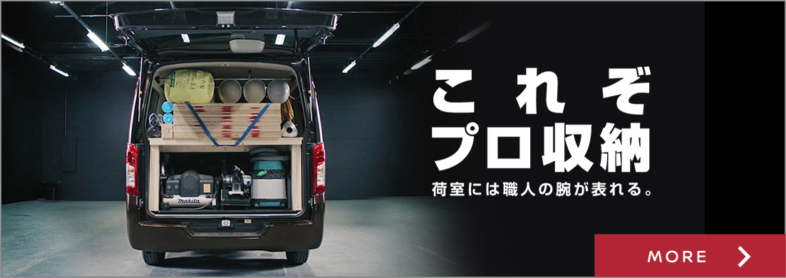 ユーティリティナットを使ってバンドやロープをかけることで、丁寧な道具の運搬が可能に。用途に合わせた仕様で、シーンに合わせた収納を叶えてくれる。