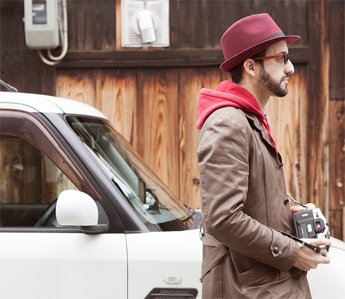 イタリア・ローマ出身のマッスィミリアーノさん(以下、マックスさん)とキューブの出会いは6年前。日本に移り住み、別のコンパクトカーに乗っていたものの、「もっと理想的なクルマに乗りたい」とリサーチを重ね、探し求めた末に出会ったのがキューブでした。大好きな日本のマンガに登場するクルマを、そのまま具現化したような四角いフォルムのコンパクトカー。
