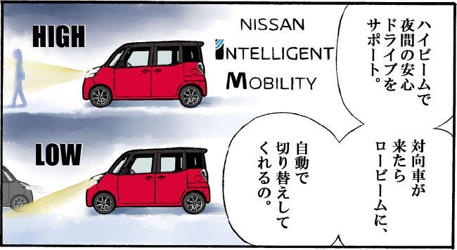 充実の先進安全装備で、より安心のお出かけを実現する日産の軽、ルークス。日産は、「ニッサン インテリジェント モビリティ」という取り組みを通して、クルマを未来へと導きます。
