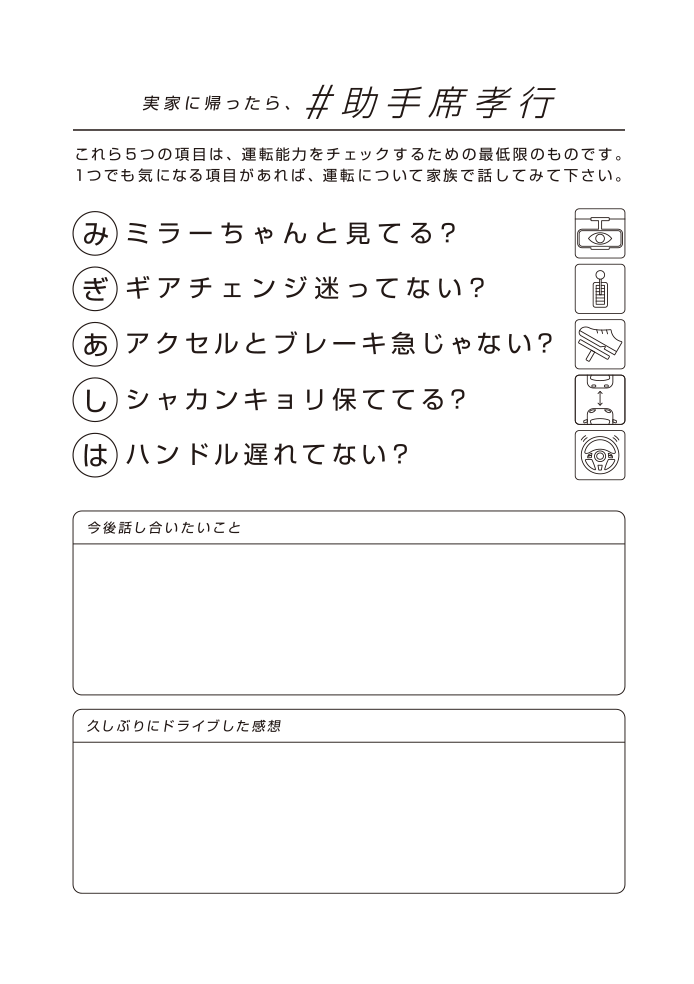 運転について家族で話してみてください。