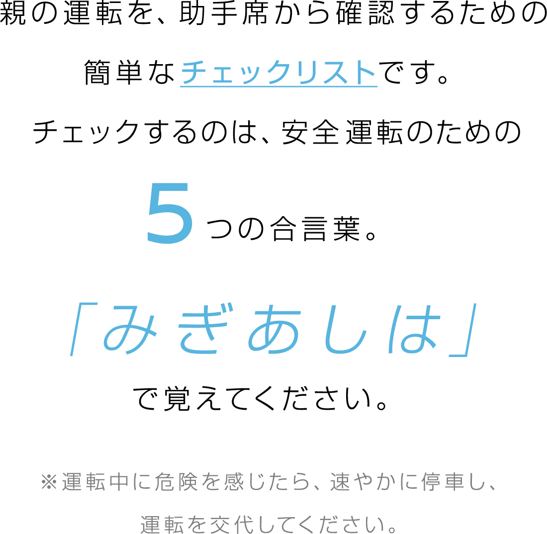 運転中に助手席から確認することのできる5項目を抜粋したものです。