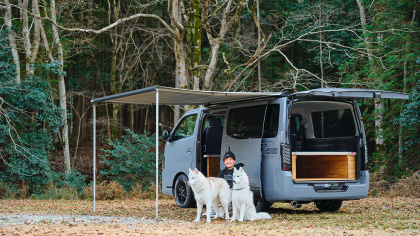 大阪の日産車専門カスタマイズショップ“ARJ”は、同社のパーツブランド「350MOTORING」の新作バンパーガードを装着したスポーティ仕様をメイク。おしゃれなベッドキットをはじめとする快適装備が満載でペットにも人にもうれしい1台に仕上がっている。