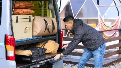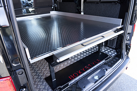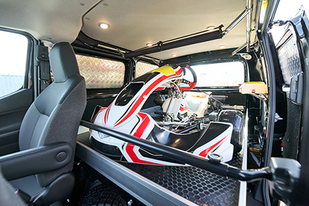 ワンボックスカスタムショップの老舗ボクシーが製作したNV200バネットは、レーシングカートのトランポ仕様。ミドルサイズのNV200を2人乗り仕様と割り切って制作した、荷室スペース全面に施した”スライドデッキ”機能が圧巻。純正らしさを損なわないさりげないアレンジで商用車感を払拭したエクステリアも見逃すなかれ。