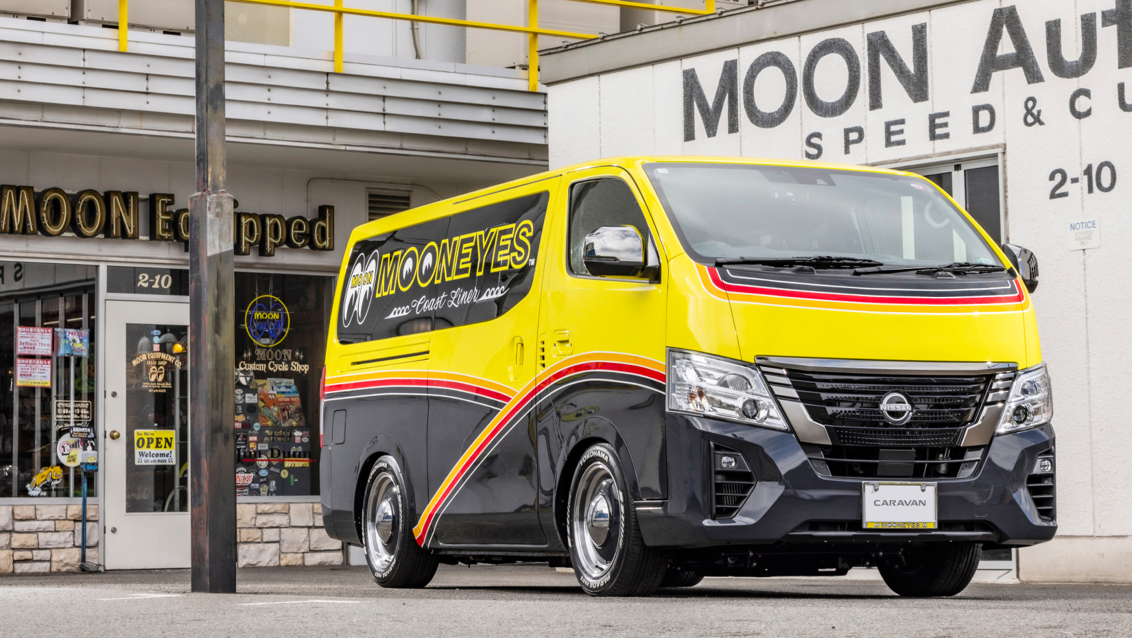 横浜・本牧からカリフォルニアスタイルのカーライフを発信し続けるあのムーンアイズから、ついにキャラバンが登場! 「キャラバンにしかできないこと。キャラバンらしさを強調すること」をコンセプトに、ムーンアイズらしいテイストで仕上げた珠玉の1台だ。