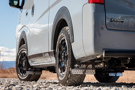 四駆サードパーティーとして有名なJAOSが、“BOX FORM SUV”をテーマにキャラバンをカスタマイズ。箱型のワンボックスカーでありながら、豪快な走りを楽しむべく、足回りをブラッシュアップ。外観は同社製パーツを各種装着し、本格派SUV並みのビジュアルもゲットした。これぞ、JAOS流キャラバン・オーバーランドスタイルだ。