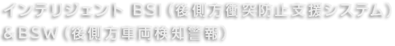 *5 インテリジェント BSI&BSWは、ドアミラーによる周囲の検知を代わりに行ったり、車両や障害物との接触を防ぐ機能ではありません。車線変更を行うときは、機能に頼った確認をせず、必ずドアミラーおよびルームミラーで側方および後方の安全を確認してください。レーダーセンサーおよびカメラには限界がありますので、機能を過信しないでください。条件によって、車両が検知できない場合があります。機能のON/OFFを切り替えることができます。