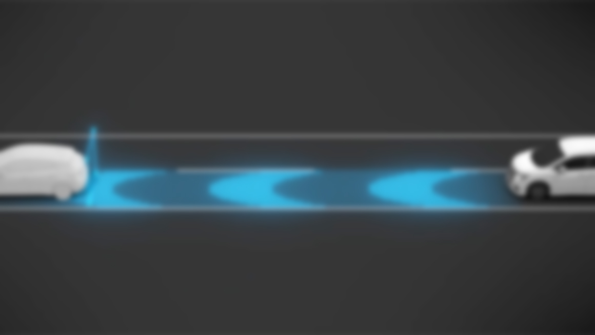 インテリジェント クルーズコントロールは、先行車との距離を測定し、運転者がセットした車速を上限として、システムがアクセルとブレーキの操作を行い、車速に応じた車間距離を保ちながら走行します。これにより、高速走行時のドライバーの運転負荷を軽減します。