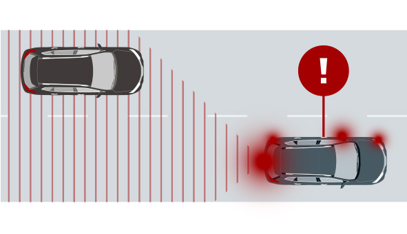 リヤカメラにより、死角になりやすい後側方の車両を検知。車線変更するとき、隣接車線に車両がいる場合は、警報によって注意を喚起する。[メーカーオプション]