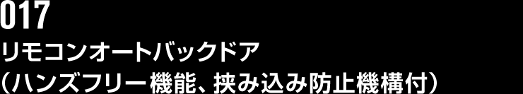 インテリジェントキーを携帯していれば、手や物をセンサーの検知範囲にかざすだけでバックドアが開くハンズフリー機能を搭載。荷物を抱えたままでも、簡単にオープンできる。またドアの開閉ができる運転席スイッチに加え、クローズ操作ができるバックドアインナースイッチを設置。メインスイッチをOFFにすれば、手動での開閉も可能となる。[メーカーオプション]