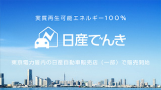 日産でんきは、実質再生可能エネルギー100%のクリーンな電気を皆さまの毎日にお届けします。