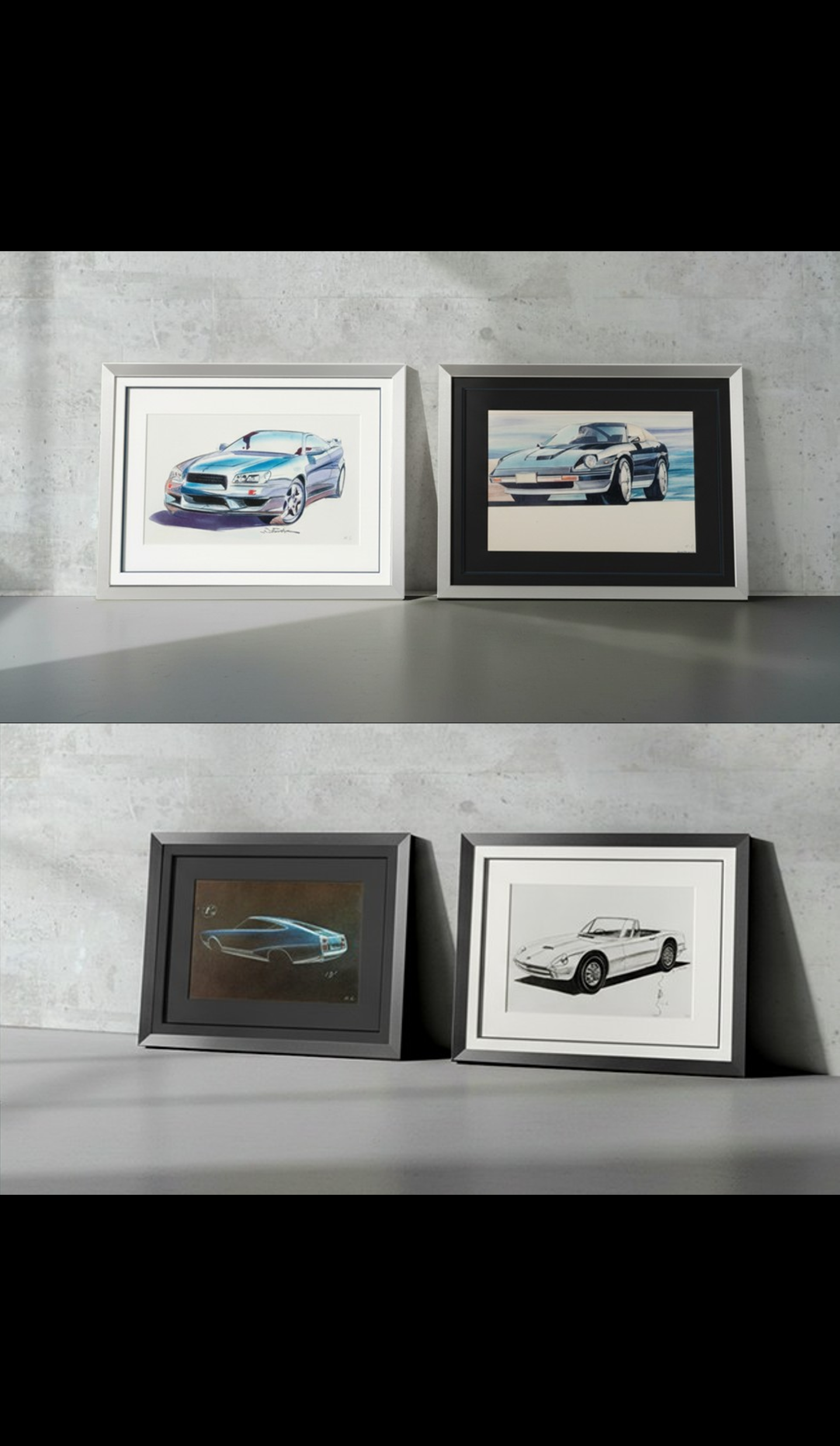 アクセス日産の歴代名車のデザインスケッチのプリント画を各23部限定でオンライン販売を開始するにあたり、NISSAN CROSSINGではデザインスケッチを展示します。