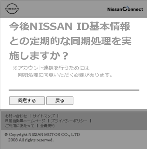 同意すると、NISSAN ID登録情報がNissanConnect会員IDの登録情報へも自動反映されます。