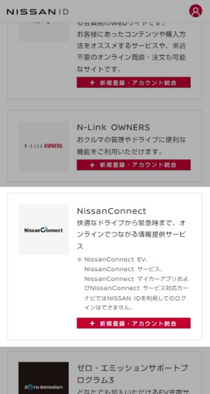 - NISSAN ID対象サービスの中からNissanConnectを選択してください。